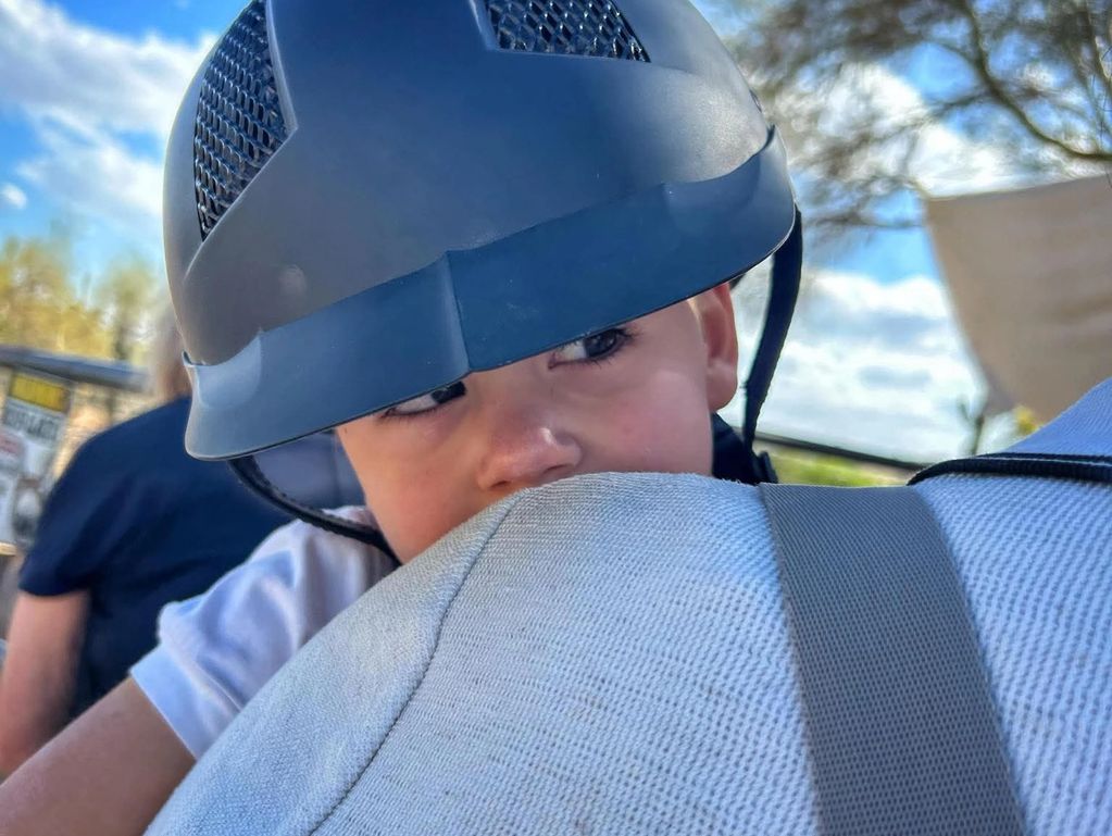 My youngest son suffers from anxiety and separation anxiety. His very first riding lesson he panicked a little when he realized he had to get in the saddle that day.