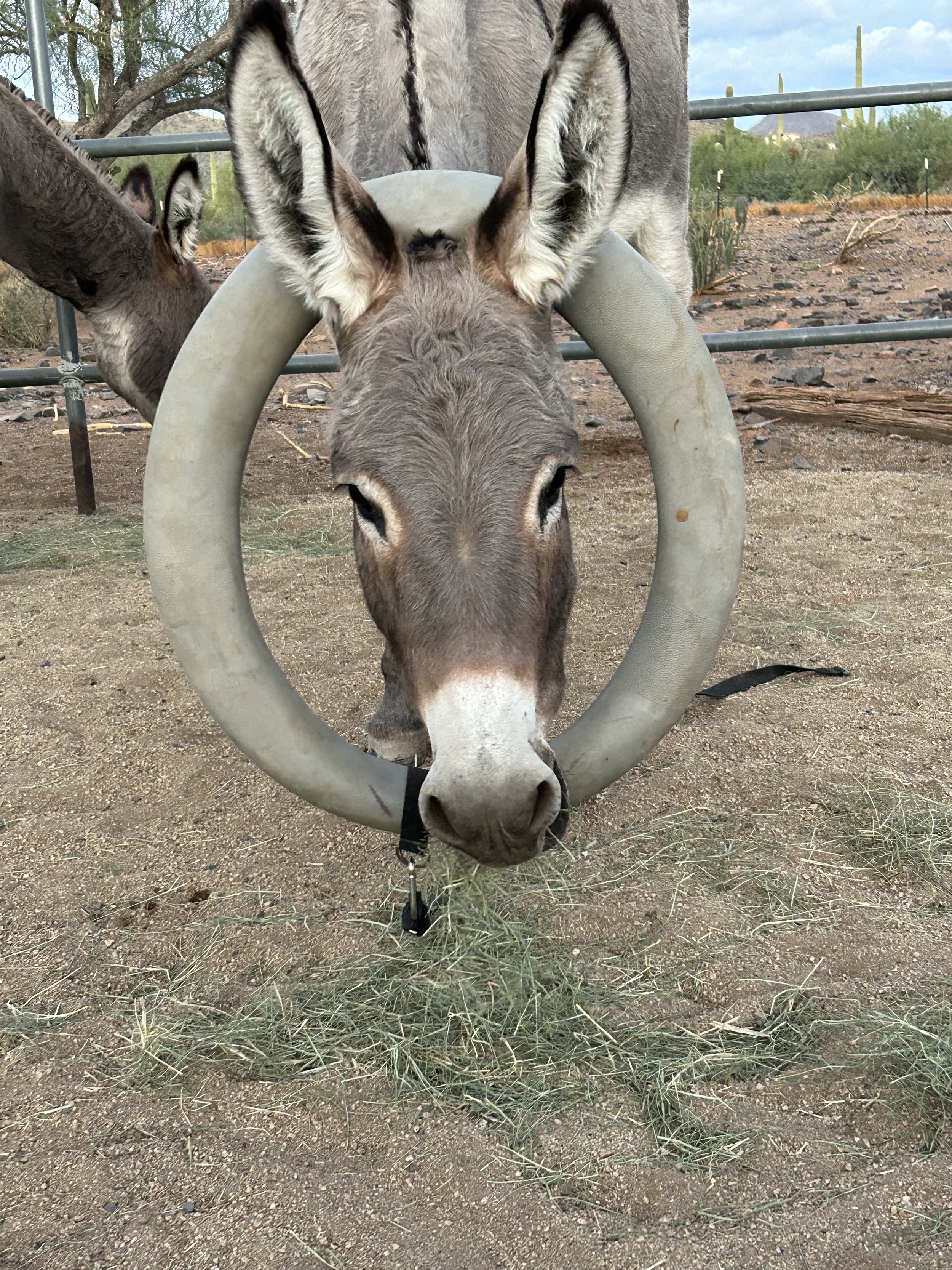 He stands about 33 inches tall. He is 8 years old. Sometimes a boss with the other donkeys, When he can steal his brother Guillermo’s food, he is happy! His birthday is 16th of January
